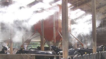 Туманообразующие системы улучшают условия при разведении любых животных. За счёт технологии мгновенного испарения, испарение не сопровождается чрезмерным повышением влажности воздуха, благодаря чему удаётся избежать распространения инфекций или антисанитарных условий, к которым может привести использование менее эффективных охлаждающих систем. Туманообразующие установки также применяются в животноводстве с целью охлаждения воздуха в помещениях содержания скота. |