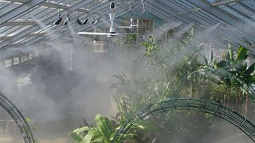 Туманообразование для увлажнения в оранжереях используются как летом, так и зимой. В летний период в оранжерее воздух сухой из-за нагрева солнца, в холодные месяцы наблюдается дефицит влаги из-за его высушивания отопительными приборами. В жаркие солнечные дни дополнительным бонусом использования туманообразующей установки будет охлаждение туманом. |