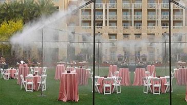 Системы туманообразования, установленные на открытых площадках гостиниц и ресторанов, делают времяпровождение более комфортным. Автоматически система одновременно охлаждает и увлажняет, тем самым продлевает комфортное нахождение людей на свежем воздухе в жаркую погоду. А также привлекает тех, кто любит проводить много времени на открытом пространстве. |