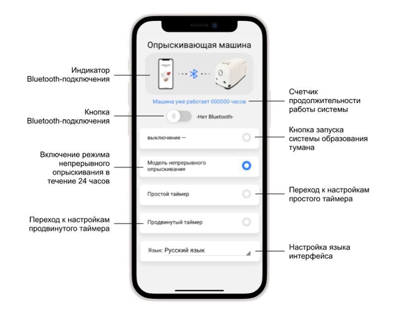 1) Насос высокого давления (6л/мин/ 70 бар.) сенсорная панель, мобильное приложение для управления, манометр, регулятор давления.